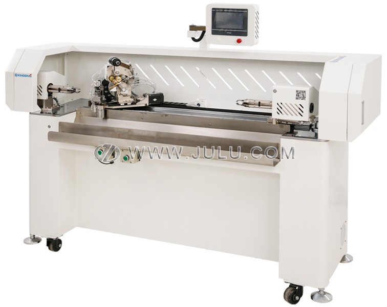 在操作便捷性方面,该设备配备液晶触摸屏(LCD Touch Screen),参数设置直观清晰。操作人员仅需设定缠带长度、数量及分段模式,系统即可自动完成进料、缠带、切断及出料全过程。对于长度较特殊的需求,支持定制更长的缠带范围(>1000mm),两端无胶带长度也可根据工艺要求优化(标准左端25mm、右端35mm,可定制缩短),满足多样化线束保护需求。