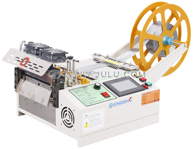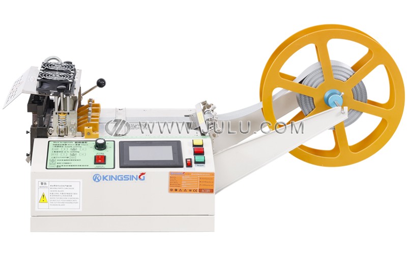 设备配备可编程控制系统,操作人员只需设定裁切长度与数量,即可实现全自动连续裁切。当选用热切模式时,刀头温度可根据材料需求在设定范围内自由调节,有效防止化纤类材料熔融粘连问题;冷切模式则适用于对温度敏感的织物或橡胶类材质,确保裁切质量不受热影响。对于带有图案标识或需精确定位的带材(如洗水标、条码带等),还可选配颜色检测传感器,实现图案识别与精准定位裁切,避免累积误差,满足高精度生产需求。
