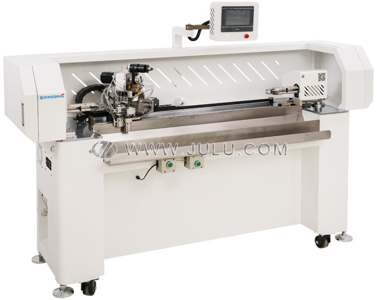 在操作便捷性方面,该设备配备液晶触摸屏(LCD Touch Screen),参数设置直观清晰。操作人员仅需设定缠带长度、数量及分段模式,系统即可自动完成进料、缠带、切断及出料全过程。对于长度较特殊的需求,支持定制更长的缠带范围(>1000mm),两端无胶带长度也可根据工艺要求优化(标准左端25mm、右端35mm,可定制缩短),满足多样化线束保护需求。