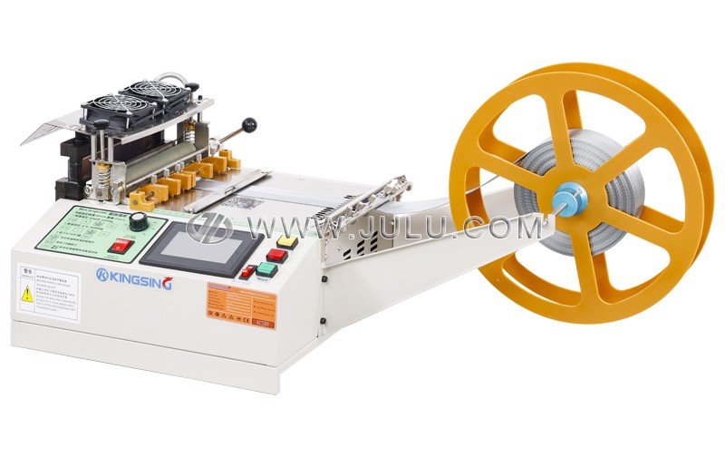 设备配备可编程控制系统,操作人员只需设定裁切长度与数量,即可实现全自动连续裁切。当选用热切模式时,刀头温度可根据材料需求在设定范围内自由调节,有效防止化纤类材料熔融粘连问题;冷切模式则适用于对温度敏感的织物或橡胶类材质,确保裁切质量不受热影响。对于带有图案标识或需精确定位的带材(如洗水标、条码带等),还可选配颜色检测传感器,实现图案识别与精准定位裁切,避免累积误差,满足高精度生产需求。