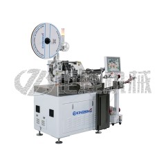 这是一台全伺服扭线沾锡端子机,集送线、裁线、剥皮、扭线上锡、打端子等功能于一体,适用于压接各种盘装的横送端子和直送端子,可全自动将线材定长切断并两头剥皮,一头扭线上锡,另一头打端子。本机配有无张力自动送线机,可以使线材始终保持松弛的状态,实现无张力送线,确保送线精度和稳定性。